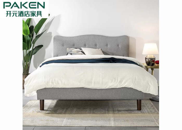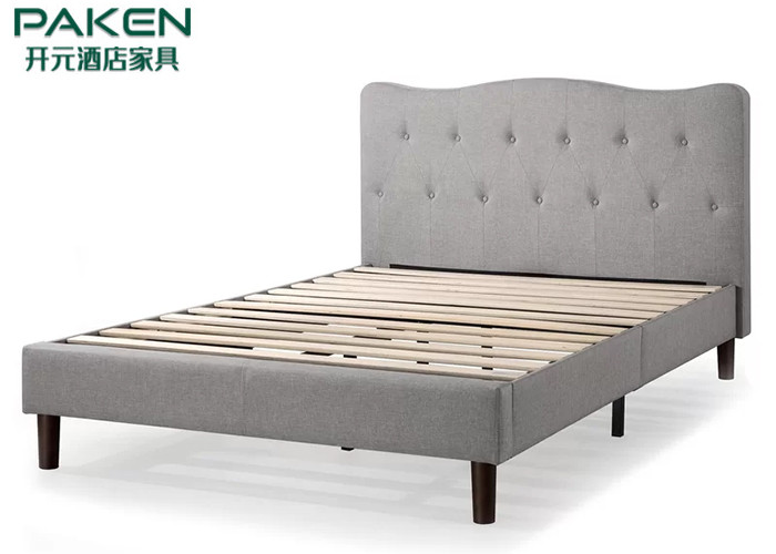 Cama de plataforma tapizada copetuda para el marco de la cama del hotel con el cabecero copetudo Gray Color Solid Wood Legs de la hebilla